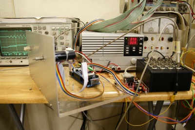 尚、写真の波形は、ドライバと、CAN接続D/Aボックス(下の写真の左側)とを接続し、CAN通信を介して内部データをアナログ出力してオシロでモニタしました。